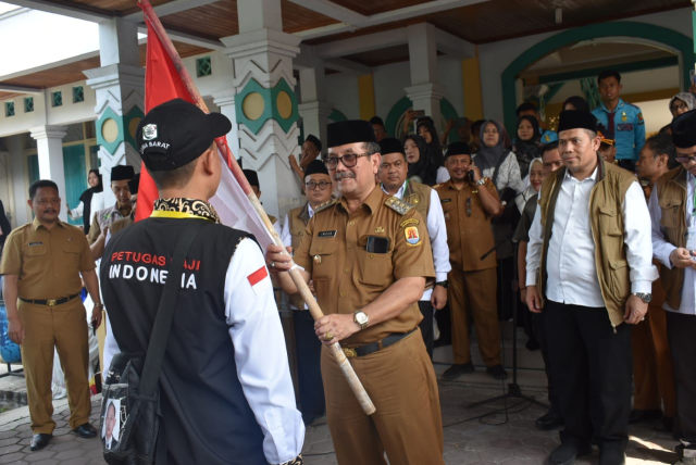 Fokus Kabar (Kabupaten Cirebon) - Bupati Cirebon, Drs. H. Imron, M.Ag melepas 432 jemaah haji dan delapan petugas haji di Asrama Haji Watubelah Kecamatan Sumber, Kabupaten Cirebon menuju Embarkasih Indramayu, Senin (13/5/2023).